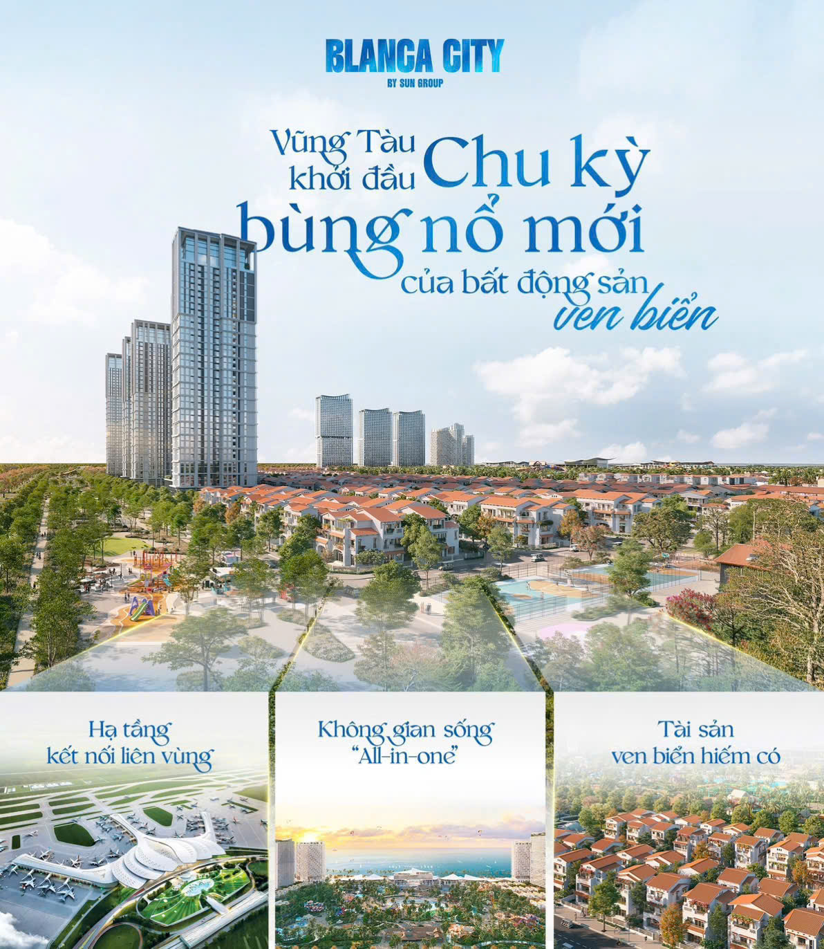 ☑️Trong bức tranh ấy, Blanca City chính là đô thị biển biểu tượng hội tụ đầy đủ các yếu tố then chốt: hạ tầng kết nối, không gian sống - nghỉ dưỡng - thương mại - giải trí đa năng và giá trị đầu tư bền vững. Sự cộng hưởng giữa cú hích hạ tầng từ sân bay Long Thành và lợi thế độc bản của Blanca City sẽ đưa Vũng Tàu trở thành tâm điểm bùng nổ bất động sản ven biển trong giai đoạn mới.